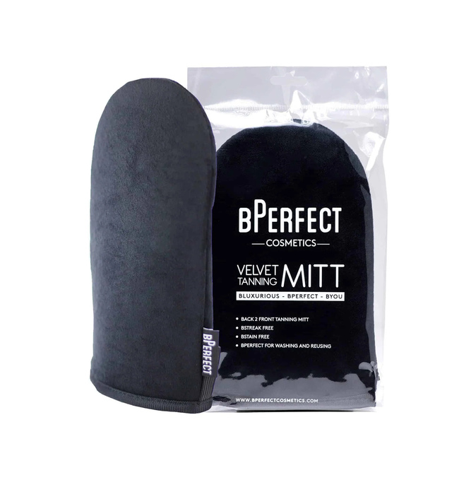 Flawless tan starts with the BPerfect luxury velvet tanning mitt.