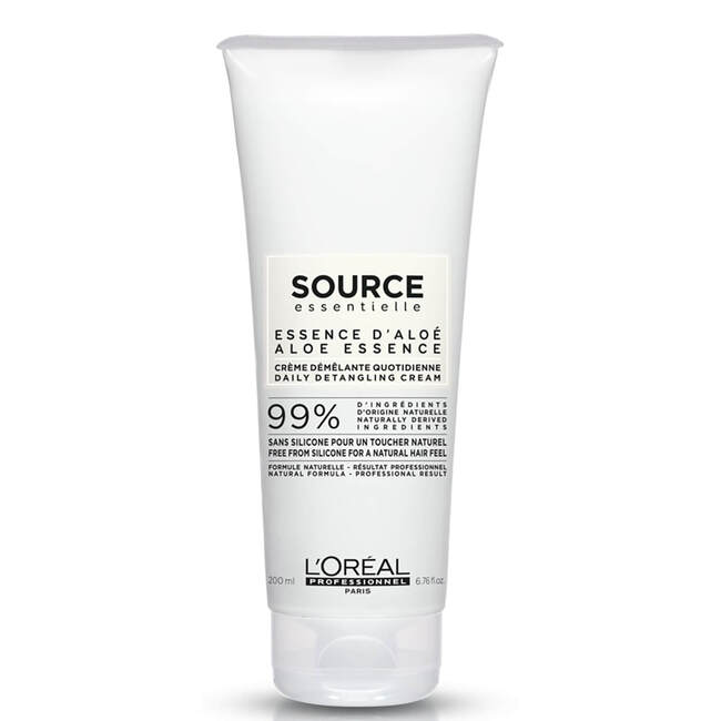 Achieve salon-worthy results with the Source Essentielle Detangling Hair Cream from L'Oréal Professionnel. Infused with a host of beneficial ingredients, including Argan Oil and Aloe Essence, the 99% natural formula effectively detangles knots and improves manageability of hair for easier styling. The lightweight, non-greasy cream helps to minimise split ends and breakage to leave damaged hair looking soft, supple and full of vitality.